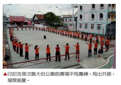 印尼吉里汶小島自2017年起島上就開始盛行平甩,每天早上天一亮,就看到各個廟前廣場聚集了上百人,浩浩蕩蕩的甩了起來,真的很壯觀,每個人都甩的十分標準,既用心又專心。